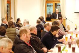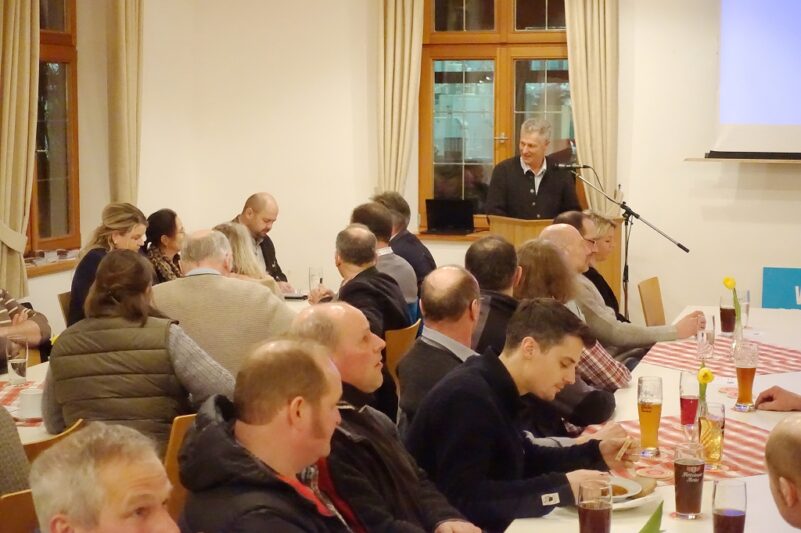 Zweiter Kreisvorsitzender Klaus Gschwendtner teilte seinen Vortrag in drei Teile ein. Einmal erklärte er das Thema Bildung als Schwerpunkt gleichwohl es trotz steigender Schülerzahlen in der Landwirtschaftlichen Berufsschule einen starken Lehrermangel gibt. Ein weiteres Thema war der Biber, der ein echtes, ja ein überdimensionales Problem im Landkreis Rosenheim ist. Und zum Dritten informierte er als Mitglied des neu gegründeten Praktikerrates von Bayerns Landwirtschaftsministerin Michaela Kaniber, dass dieser zusammen mit Vertretern der Umweltverbände brauchbare Vorschläge an die EU ausarbeitet, um der zunehmenden Bürokratie Einhalt zu gebieten. In der abschließenden Diskussion waren natürlich die Wolfsproblematik und der Brennernordzulauf, die Absage des Zentralen Landwirtschaftsfestes und Terminbekanntgaben im Mittelpunkt. Besondere Termine sind die Wahl einer neuen Bayerischen Milchkönigin und eines Milchprinzen (Anmeldungen bis 17.3. noch möglich beim Verband der Milcherzeuger Bayern) oder der „Tag der jungen Bäuerin“ am Dienstag, 12. März in Mietraching. Zur Zusammenkunft hatte in Abstimmung mit dem BBV-Rosenheim der Ortsverband Wildenwart eingeladen. Dessen Zweiter Obmann Konrad Huber begrüßte die bäuerlichen Vertreter auch als Hausherr und als Trachtenvorstand von Atzing und dessen Erster Obmann Ulrich Fischer leitete die Diskussion und bedankte sich bei den BBV-Referenten mit einem Eierlikör vom Wastlhof.