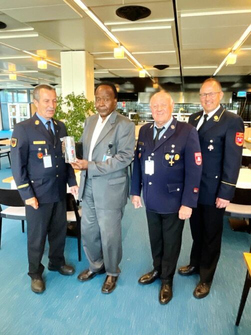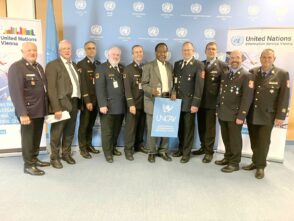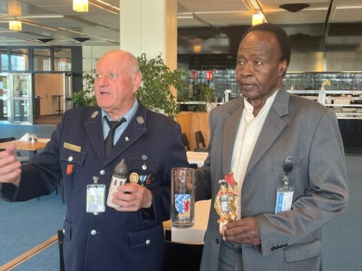 Den Abschluss bei den Vereinten Nationen in Wien bildete der Besuch der SSS-Feuerwache der UN in Wien. Die Bayerischen Vertreter des Feuerwehr-Landesverbandes-Bayern und Landkreis Rosenheim besprachen dort mit dem Commander, Chief Volker Reis und seinem Stellvertreter Ronny Stark in einem gemeinsamen Erfahrungs- und Meinungsaustausch verschiedene Arbeitsweisen der Feuerwehren im internationalen Kontext und hoben dabei gleichzeitig die internationale Zusammenarbeit der europäischen Feuerwehren im Krisen- und Katastrophenfall positiv hervor.