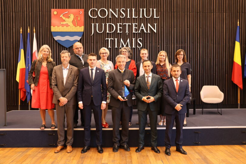 Als Zeichen der langjährigen Verbundenheit und des Wunsches auch nach zukünftiger Partnerschaft überreichte Otto Lederer dem Präsidenten unter anderem ein gerahmtes Holzbild, das die Umrisse beider Landkreise vereint: „Ich hoffe, dass die lebendige Verbindung zwischen uns auch weiterhin trotz der großen Entfernung bestehen bleibt.“ Präsident Alin Adrian Nica hatte in der anschließenden Festsitzung ebenfalls eine Überraschung für die Gäste aus Deutschland. Beim „Tag des Kreises“ ehrte er mit einer Glasskulptur und einer Urkunde besondere Menschen, die sich im zurückliegenden Jahr für den Landkreis Temesch verdient gemacht haben, so zum Beispiel im sozialen oder im kulturellen Bereich. Am Ende der Ehrung überreichte er auch Landrat Otto Lederer stellvertretend für die Delegation diese Skulptur als Dankeschön für die langjährige Unterstützung, insbesondere durch Hilfsgüter, Spenden und der konkreten Hochwasserhilfen bei den Überschwemmungen im Bereich Temesch vor einigen Jahren. Er bedankte sich aber vor allem auch für die enge Freundschaft.