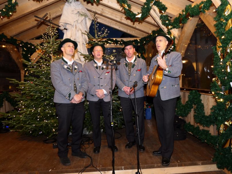 Die gute Stube der Inn-Stadt Rosenheim, der Max-Josefs-Platz dient in den nächsten 24 Tagen ganz den Angeboten des Christkindlmarktes vom Wirtschaftlichen Verband Rosenheim. Von der feierlichen Eröffnung zeugen diese Bilder – unter anderem mit den Rimstinger Sängern.