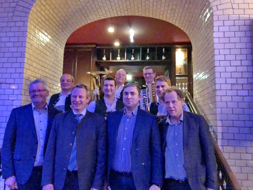 Eine besonders interessante Karriere machte Stefan Dürr aus Baden-Württemberg im Südwesten von Russland. Vom Agrar-Lehrling brachte es der leidenschaftliche Landwirt in seiner neuen Wahlheimat, der Region Woronesch zum größten Rohmilchproduzenten Europas und der Russischen Föderation. Als nunmehr der „Milch-Zar“ in den Tagen der Internationalen Grünen Woche in Berlin seinen 56. Geburtstag feiern konnte, da bekam er auch musikalischen Besuch aus Rosenheim. In Rosenheim hielt der deutsch-russische Landwirt und Landmaschinenhändler als Geschäftsführer der deutschen Holding Ekosem-Agrar vor gut einem Jahr in der voll besetzten Inntalhalle in Rosenheim einen viel beachteten Vortrag auf Einladung der Volksbank Raiffeisenbank Rosenheim Chiemsee. Dessen Agrar-Direktor Christian Bürger, der mit Stefan Dürr freundschaftlich verbunden ist, gratulierte dem größten Agrarunternehmer Russlands mit einem Ständchen der Chiemgauer Biergartenmusi unter der Leitung von Rudi Piezinger. Stefan Dürr (re.) zeigte sich überrascht und hoch erfreut vom bayerischen Gruß und stellte sich zusammen mit (von links) Alois Gerig, Mitglied des Deutschen Bundestages und Vorsitzender des Ausschusses für Ernährung und Landwirtschaft, Christian Bürger und dem russischen Landwirtschaftsminister Alexander Nikolajewitsch Tkatschow dem Fotografen zu einem Erinnerungsbild mit der Chiemgauer Biergartenmusi.