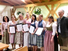 Für die besten Abschlüsse wurden Karolin Wieser und Veronika Ramsauer, Regina Daxenberger und Maria Thaurer, sowie Kathrin Bauer geehrt. Manuela Steindlmüller und Maria Wimmer bedankten sich mit einem Schmankerlgeschenken bei Behördenleiter Dr. Kasberger, Semesterleiterin Gabi Hierl-Dicker und Schulleiterin Anna Bruckmeier. Musik und Einlagen der Studierenden rundeten die schöne Feier ab.