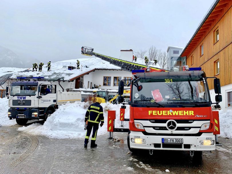 Die Räumarbeiten auf den Dächern in Aschau und Sachrang sind heute Morgen wieder aufgenommen worden. Nach Angaben des Örtlichen Einsatzleiters, Kreisbrandrat Richard Schrank, sind bereits 450 Einsatzkräfte vor Ort. Ihre Anzahl wird sich im Laufe des Tages noch erhöhen. Auch die Koordinierungsgruppe im Rosenheimer Landratsamt ist seit 07:30 Uhr im Dienst.