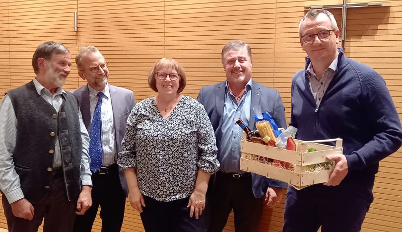 Sebastian Kleinschwärzer, Vorsitzender des Kreiskatholikenrats Rosenheim, Paul Deutschenbaur, Dekanatsratsvorsitzender für Rosenheim, Anton Daxenbichler, Dekanatsratsvorsitzender für Bad Aibling und Regina Seipel vom Dekanatsrat Chiemsee nutzten die Versammlung auch dazu, um sich persönlich von Domkapitular Dekan Pfarrer Daniel Reichel zu verabschieden und ihn für die gute Zusammenarbeit in den vergangenen Jahren zu danken.