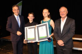 Abschließend gab es noch ein großes persönliches Lob von Maier-Gehring: „Ich traf auf zwei hervorragende junge Musiker, die durchaus mit Ehrgeiz und viel Fleiß ihre Ziele verfolgen. Ich traf aber auch auf zwei sehr sympathische, aufgeschlossene und höfliche junge Menschen. Denn Herzensbildung gehört nun einmal auch dazu, zu einem „runden Charakter“ und zu einem guten Lebensweg.“ Natürlich bewiesen die beiden, dass sie den Kulturförderpreis zurecht erhalten haben. Elisabeth Pihusch, begleitet von Yume Hanusch am Klavier, riss das Publikum mit Tschaikowskis Violinkonzert Opus 35, 3. Satz, Finale, mit. Und Andreas Pihusch erntete für Paganinis Opus 1, Caprice Nr. 9 „Die Jagd“ viel Applaus und vereinzelte Bravo-Rufe. Wahre Begeisterung entfachte er mit seiner „David-Garrett-Tribut-Combo“. Sie beendete den Festabend mit einer Interpretation des Rolling Stones-Hits „paint it black“.