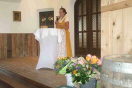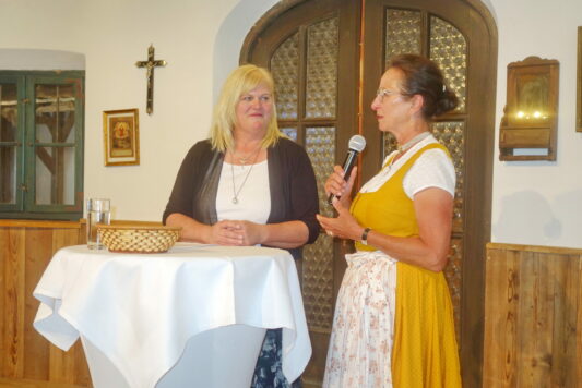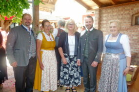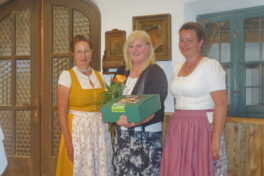 Mit einem kurzweiligen Motivations-Vortrag machte die Stellvertreterin von Landesbäuerin Christine Singer, Christine Reitelshöfer aus Mittelfranken den anwesenden Bäuerinnen und Landfrauen Mut, mehr zu wagen. Besonders in der öffentlichen Diskussion und in der Politik sollen sich die Frauen mehr Gehör verschaffen. Dazu gehört es auch, dass sich Frauen in der Haus- und Landwirtschaft fachkundig ausbilden lassen. „75 Jahre in Bayern organisierte Landfrauen sind 75 Jahre Bildungsarbeit, Gesundheitsvorsorge und Brauchtumspflege“ – so die Referentin, die auch auf zukünftig stärker werdende Themen die Ernährung und die Pflege sein werden. Zusammenfassend zum Appell des Sich-Mehr-Einmischens zitierte die Rednerin: „Wenn immer der Klügere nachgibt, dann bestimmen zum Schluss die Deppen wo es langgeht“. Mit einem RegRo-Genusskorb und mit regionalen Schmankerln bedankten sich die Gastgeber bei Christine Reitelshöfer. Eingeladen wurde noch namens der Landesehrenbäuerin Annemarie Biechl zu einem Benefizkonzert am Sonntag, 25. Juni um 15 Uhr im Kloster Frauenwörth zugunsten des dortigen Freundeskreises und Klosters. Blumen gab es abschließend noch für Anneliese Riepertinger und für ihre Dienste bei der Seniorenbetreuung und ein Vergelt´s Gott gab es noch für meine Volksbank-Raiffeisenbank für die Einladung zu Kaffee und Kuchen. Auch ein nachmittäglicher Handwerkermarkt bereicherte den arbeitsfreien Tag der Bäuerinnen und Landfrauen (über die Ehrungen berichten wir noch gesondert).