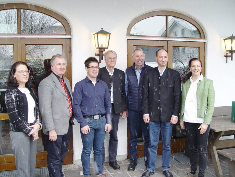 Bericht und Foto: Amt für Landwirtschaft – (von links) Anna Bruckmeier (Bereichsleiterin Landwirtschaft im AELF), Dr. Hans-Jürgen Seufferlein (Geschäftsführer des Verbandes der Milcherzeuger Bayern e. V.), Gusti Spötzl (Landwirt), Dr. Georg Kasberger (Behördenleiter AELF), Sepp Grandl (VLF-Vorsitzender), Georg Baumann (Fütterungsberater LKV), Monika Schaecke (Sachgebietsleiterin Landwirtschaft AELF und Moderatorin der Veranstaltung)
