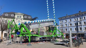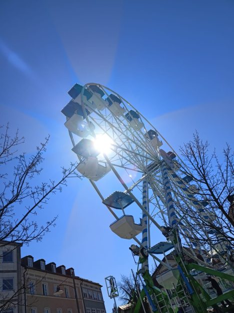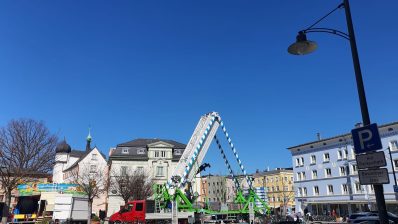 Wie berichtet rüstet sich die Stadt Rosenheim für Freizeit- und Volksfestfreuden auf verschiedenen Plätzen. Aktuell diese Bilder vom Aufbau des Riesenrads am Ludwigsplatz in Rosenheim.