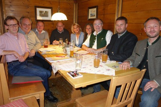 Foto: Hötzelsperger – Gastronomie-Treffen zur Grünen Woche beim Entenwirt in Törwang am Samerberg von links: Thorsten Diederich (Flötzingbräu), Roland Bräger (Brauerei Maxlrain), Joachim Wiesböck (ORO Rohrdorf), Franz Amberger und Marisa Steegmüller (Flötzingerbräu), Christina Pfaffinger vom Tourismusverband Chiemsee-Alpenland, Peter Schrödl vom Samerberg sowie Marco Steinacher und Andreas Maier (Auerbräu).
