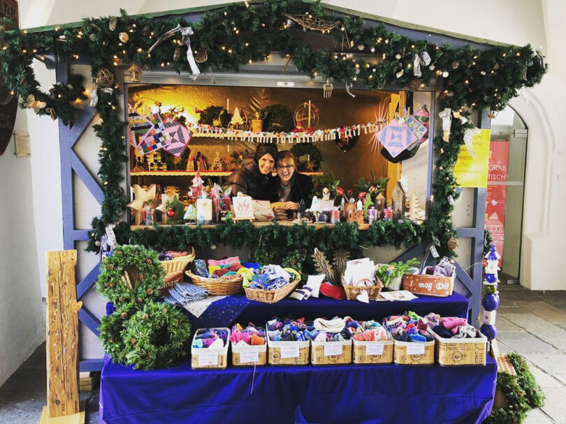 “Der Sternstunden-Stand der städtischen Mädchenrealschule unter dem Mittertor ist eines von vielen Highlights auf dem Rosenheimer Christkindlmarkt. Hier werden jedes Jahr selbstgemachte Produkte aus Schüler-, Eltern oder Großelternhand verkauft. Das Angebot reicht von selbstgestrickten Socken über Schmuck, Getöpfertes, Kränze, Kerzen, Honig, Schlüsselanhänger, Holzsterne und vieles mehr. Der Erlös der Verkäufe kommt der Aktion Sternstunden zu Gute.