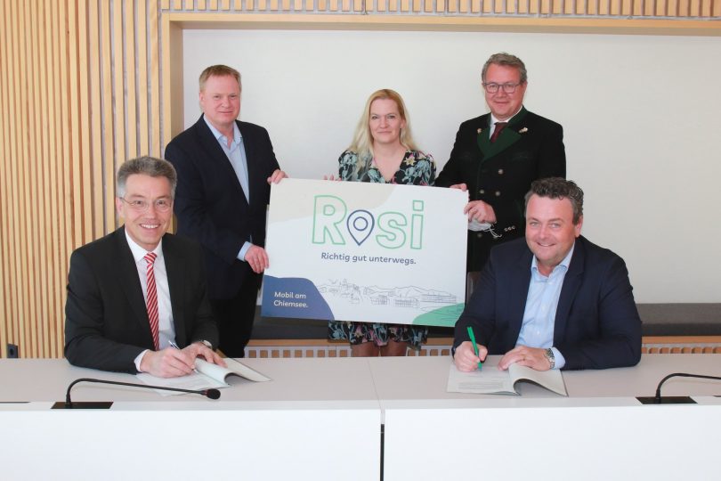 Der Startschuss für den Ausbau des ÖPNV-Angebotes am Chiemsee mit einem innovativen On-Demand-Verkehr ist nunmehr gefallen: Der Verkehrsvertrag für das neue Mobilitätsangebot wurde vom Landrat des Landkreises Rosenheim, Otto Lederer, und dem Geschäftsführer der Regionalverkehr Oberbayern GmbH (RVO), Stefan Kühn, im Beisein des Geschäftsführers der Rosenheimer Verkehrsgesellschaft, Oliver Kirchner, RVO-Projektleiterin Nina Brosinger sowie Landtagsabgeordneter Klaus Stöttner unterzeichnet. Der Landkreis Rosenheim hat die beiden Deutsche Bahn-Töchter Regionalverkehr Oberbayern GmbH (RVO) und ioki GmbH für die Durchführung des On-Demand-Verkehrs für die kommenden sechs Jahre beauftragt.
