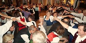 Höhepunkt jedes Volkstanzabends des Rosenheimer Volkstanzkreises ist die Münchner Françai-se, die immer den Auftakt zur zweiten Hälfte des Abends bildet. „Ein bisserl vornehm und ein bisserl leger“ geht es da zu: man grüßt sich, tauscht Komplimente aus und dreht miteinander – und das alles nach den Anweisungen des Tanzlführers, der damit ganz in der Tradition der höfi-schen Tanzmeister steht. Etwas anspruchsvoller sind die fünf Touren mit Grüßen, Vorstellen, Platzwechseln und unterschiedlichen Paareinteilungen schon, aber am Ende waren sich wieder alle einig, es „Ausgezeichnet!“ gemacht zu haben.