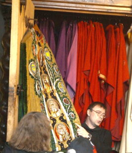 Über eine Seitenkapelle und den Kreuzgang führte der Rundgang in die holzgetäfelte Sakristei der Basilika. Dort öffnete Frater Joachim kunstvoll verzierte Schränke voller Messgewänder in allen liturgischen Farben – darunter ein besonders prachtvolles, besticktes Stück. Neben kunsthistorischen Erklärungen erfuhren die Besucher auch, wie die Tulpe zu kirchlichen Ehren kam: Als sie um 1600 über Konstantinopel nach Europa gelangte, wurde sie rasch zur Modeblume. Wegen ihrer sich nachts schließenden und morgens öffnenden Blüte wurde sie zum Symbol des wiederkehrenden Lebens.