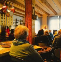 In seinem lebendigen Vortrag spannte Herr Hipp einen Bogen von alten Handwerkstraditionen bis zur modernen Firmenentwicklung. Obwohl er sich auf die Themen Wachszieher und Lebzelter beschränken musste, versprach er: „Es gäbe noch genug Geschichten für mehrere Vorträge – etwa über Votivgaben, Redensarten oder alte Bräuche. Die erzähle ich Ihnen, wenn Sie wieder einmal kommen.“ Nach dem Vortrag blieb noch Zeit, im Geschenkeladen zu stöbern und bei Kaffee, Kuchen und hausgemachtem Eis den Tag gemütlich ausklingen zu lassen. Am Abend kehrte die Gruppe mit vielen neuen Eindrücken aus Geschichte und Handwerk nach Rosenheim zurück.