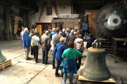 Ein rundum gelungener Ausflug führte den Rosenheimer Volkstanzkreis zusammen mit Freunden des Vereins und Bekannten in den Innsbrucker Stadtteil Wilten. Erste Station war die Glockengießerei Grassmayr, wo seit 1599 Glocken für die ganze Welt gegossen werden – von den großen und größten Kirchenglocken bis zu kleinen Glocken, die in Glockenspielen erklingen. Dort hatte sich die Gruppe für eine Führung durch die Werkstatt und das Glockengießer-Museum angemeldet. Der Seniorchef des Familienunternehmens nahm sich für die Besucher extra viel Zeit und erklärte ihnen mit großer Begeisterung für seinen Beruf und sein Handwerk, wie Glocken entstehen, was es über ihren Klang zu wissen gibt und vieles mehr. Wie ein geduldiger Lehrmeister ging er dabei auf die zahlreichen Fragen der Gäste ein und nahm dabei immer wieder auch Bezug auf die Glocken, die in den Kirchtürmen Rosenheims läuten.