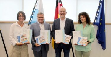 Bericht und Foto: Stadt Rosenheim – Franz Höhensteiger (rechts) und die Mitarbeiterinnen des Wahlamts mit den glücklichen Gewinnern.