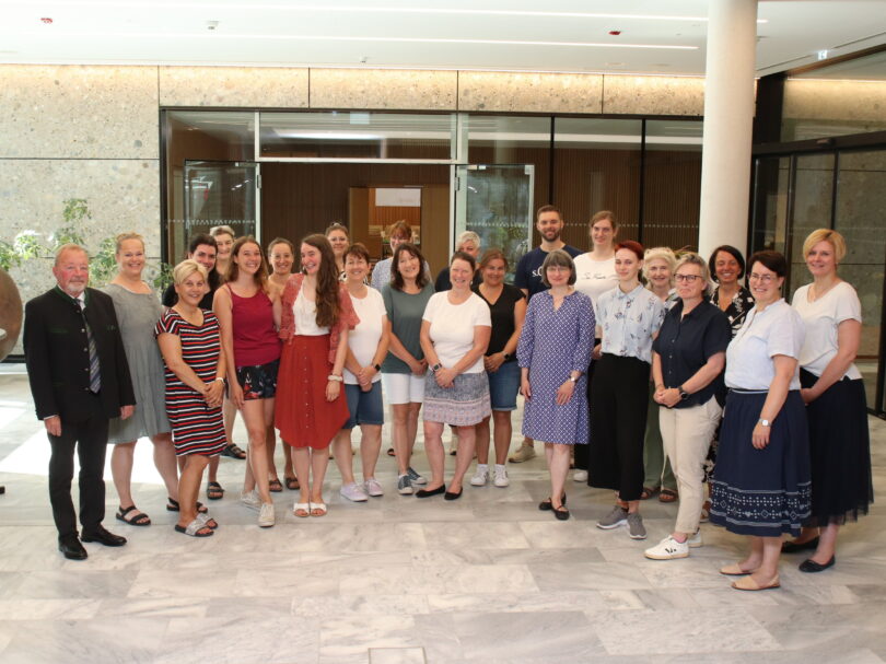 Bericht und Foto: Landratsamt Rosenheim – stellvertretender Landrat Josef Huber (links) begrüßte die Teilnehmenden der diesjährigen Qualifizierungskampagne „Startchande kita.digital“ bei der Abschlussveranstaltung im Landratsamt Rosenheim. Choachin Katja Bröckl-Bergner (4. von rechts) und Sibylle Baumgartner (2. von rechts) begleiteten das Projekt.