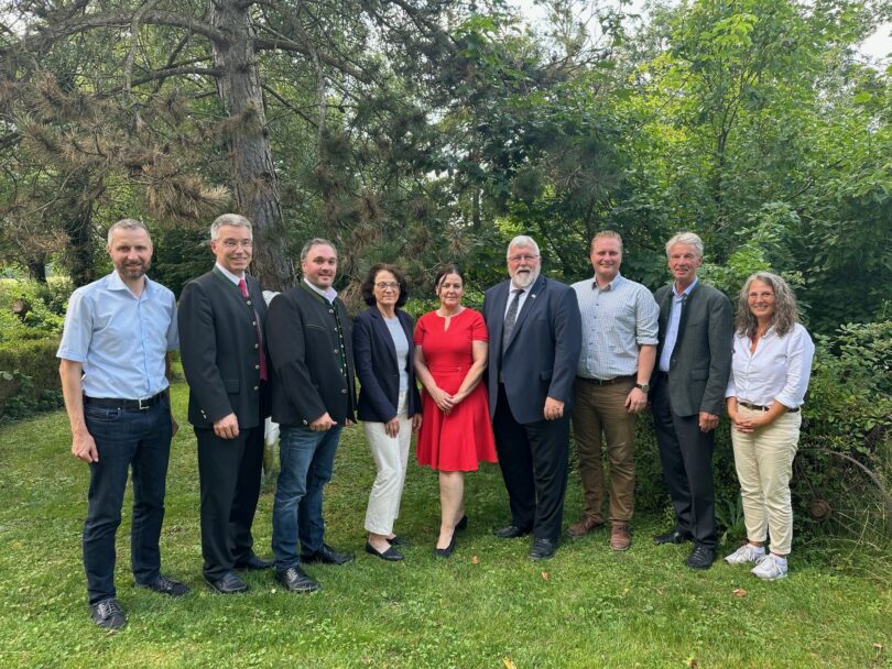 Peter Heßner (LRA) Landrat Otto Lederer, Andreas Gasteiger (Agrar meine Volksbank Raiffeisenbank), Anna Bruckmeier (Schriftführerin), Elisabeth Widauer (Geschäftsführerin Vermarktungs-GmbH), Sebastian Friesinger (Vorsitzender), Josef Steingraber (Kassier), Felix Schwaller (Revisor) und Christina Pfaffinger (Stellvertretende Vorsitzende).