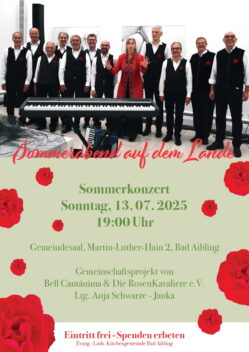 Termin: Sonntag, 13. Juli 2025, 19 Uhr – Ort: 83043 Bad Aibling, Martin-Luther-Hain 2
