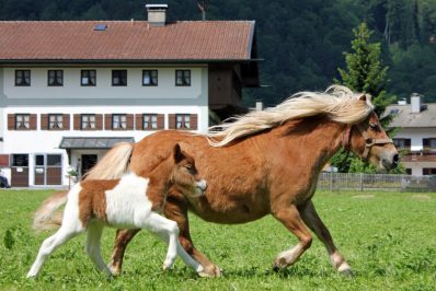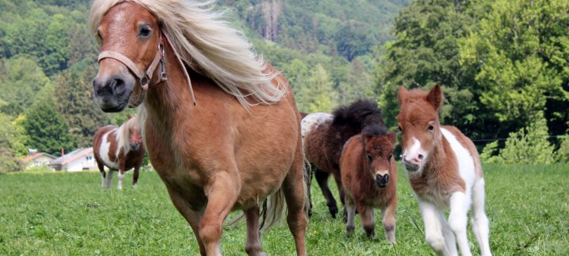 Wahrhaft die Lebensfreude anzumerken ist dem frischgeborenen Shetlandpony mit dem Namen „Hansi“. Die Sonne aufsaugen und dabei die Freiheit und Weite auf der grünen Wiese genießen, was könnte es schöneres geben. Erst vor fünf Tagen hat Hansi das Licht dieser Welt erblickt, doch das tut ihm überhaupt nichts ab und so legt er zusammen mit seiner Mutter mit Karacho seine Runden der Glückseligkeit auf der Weide zurück. Sein zuhause hat der Zottel-Star auf dem Kiesmüller-Hof bei Anni und Sepp jun. Kiesmüller, direkt unterhalb von Schloss Hohenaschau.