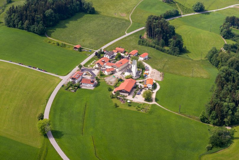 Der Samerberger Ortsteil Rossholzen zeigt sich aus der Luft als ein in sich geschlossenes Dorf mit der Kirche St. Bartholomäus, mit dem Altenheim und mit dem Moarhof als größte Bauwerke. Die Trachtler von Rossholzen feiern im übrigen vom Dienstag, 14. August bis Montag, 2o. August ihren 120. Geburtstag mit einem Festzelt und einem reichhaltigem Programm – siehe www.trachtenverein-rossholzen.de.