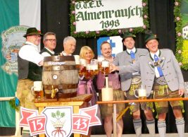 “Das erfreut das Herz” – mit diesen Worten bewertete Vorstand Martin Schober das voll besetzte und in guter Stimmung befindliche Festzelt, das mit dem Bieranstich des Trachtenvereins “Almenrausch” Rossholzen die Veranstaltungen zum 120jährigen Vereinsjubiläum begann. Davon noch einige weitere Bilder.