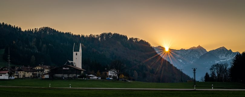 Ein verheißungsvoller Sonnenuntergang war am Samstagabend im Samerberger Ortsteil Rossholzen zu sehen – dieser war sozusagen schöner Vorbote für den tagsdarauf am Sonntag, 7. November um 10 Uhr mit einem Feldgottesdienst beginnenden Leonhardiritt – worüber wir noch ausführlich berichten werden.