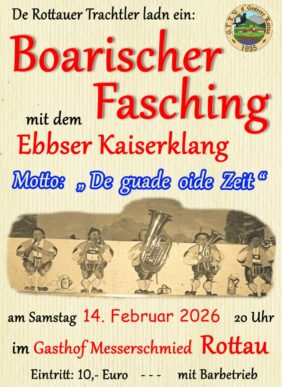 - Boarischer Fasching im Messerschmied-Saal am Faschingssamstag, 14. Februar 2026