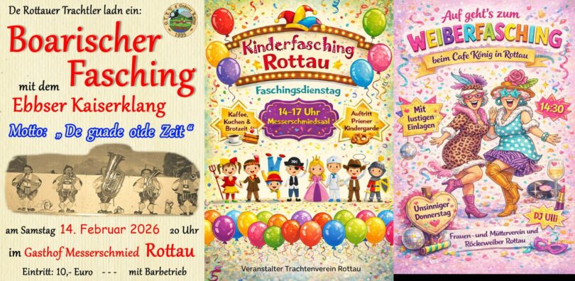 Auch Rottau in der Gemeinde Grassau befindet sich im Faschingsendspurt und so wird auf die Veranstaltungen des Trachtenvereins in den kommenden Tagen hingewiesen: