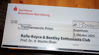 Aus Dank an den Trachtenverein für die Umrahmung des Abends besuchten uns beim vergangenen Vereinsfrühschoppen der „RREC-Gebietsleiter Süd“ Prof.Dr.H. Martin Illner mit seiner Frau Jorun Klinger-Illner (beide haben auch den Abend organisiert) und übergaben den anwesenden Ausschussmitgliedern einen großzügigen Scheck über 1.000,-€.