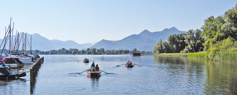 Flache Buchten, gelbe Teichrosenfelder und weite Röhrichte – am Montag, 5. August „staken“ die Teilnehmer der abenteuerlichen Bootsführung mit Holzstangen durch das seichte Wasser des Chiemsees. Dabei werden gemeinsam mit einem Naturführer Muscheln, Schnecken und Wasserinsekten entnommen und „blubbernde“ Methangasblasen entzündet. Bestückt mit Sichtkästen haben Interessierte die Möglichkeit einen ungehinderten Blick auf den Grund des Sees zu werfen und die Unterwasserlandschaft im Trockenen zu erforschen. Zurück an Land, werden die „Funde“ mit Lupe und Mikroskop untersucht und die Zusammenhänge im Lebensraum See werden durch den Experten erklärt.
