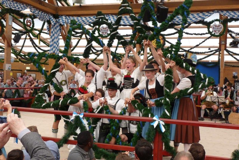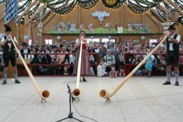 Ein voller Erfolg war der Auftritt der 35 Aktiven aus den acht Gebietsvereinen Allmannsau-Lengmoos, Altötting, Ampfing, Burghausen, Gebensbach, Reischach, Töging und Wasentegernbach und der 20 Goaßlschnoizer aus den zwei Gebietsvereinen Altötting und Burgkirchen auf der Oid’n Wiesn am Münchner Oktoberfest. Mit dabei waren auch die Burgkirchner Alphornbläser. Die Vereine aus den Landkreisen Mühldorf und Altötting fuhren mit einem Bus nach München, die Vereine aus dem Landkreis Erding mit dem Zug, um sich auf der Oid’n Wiesn zu präsentieren. Mitgefahren sind außerdem noch 12 Musikanten, um die Aktiven und Goaßlschnoizer zu begleiten, und mehr als 20 Zuschauer. Nach einem kleinen Festzug durch die Oide Wiesn zeigten die Aktiven u.a. das Mühlradl, Plattler, wie z.B. das Birkenstoana Glöckerl, die Olympiapolka, einige Marschplattler und zum Schluss noch den Sterntanz. Die De Andern & I – Tanzlmusi aus dem Erdinger Landkreis begleiteten die Aktiven, die eine Stimmung in das Zelt brachten und sehr viel Beifall bekamen, wie es auch bei anderen Auftritten oft wünschenswert wäre. Die Goaßlschnoizer wurden von einer Tanzlmusi mit der Ziachspielerin Edith Heistinger begleitet. Das ganze Programm haben sie zweimal durchgeführt, ab 14:00 Uhr und dann nochmal ab 17:00 Uhr. Gebietsvertreter Sepp Sperr organisierte den Besuch und stellte auch die Gruppe ein wenig vor. Die Bilder zeigen einige Eindrücke.