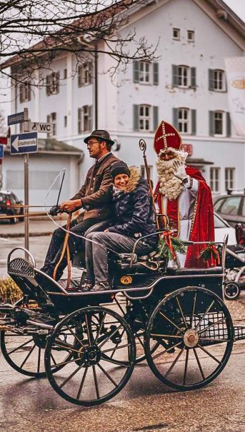 “Es war schon ein besonderer Einsatz in diesen besonderen Zeiten, aber die vielen und mit Freude erfüllten Kinder waren der Lohn für unseren Einsatz” – so Gemeinderat Johannes Dreikorn, der namens der Prien Marketing GmbH und der Marktgemeinde Prien coronabedingt zum Nikolaustag in Prien unterwegs war. Begleitet wurde er dabei von Pferdekutscher Hansi Wallner und zeitweise von Bürgermeister Andreas Friedrich und PriMa-Geschäftsführerin Andrea Hübner. Unsere Bilder zeigen die Nikolaus-Fahrt durch die Priener Orstmitte, immer wieder wurde kurz angehalten, um den Kindern kleine Geschenke zu übergeben.