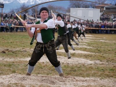 Gleich zwei Jahre in Folge mussten die Schnalzervereinigung Rupertiwinkel und die Ausrichter aus Waging das große Rupertigau-Preisschnalzen schweren Herzens absagen. Wie bei allen anderen Großveranstaltungen machten die Beschränkungen um die Corona-Pandemie dem Vorhaben einen Strich durch die Rechnung. „Dieses Mal wird es klappen, wir sind voller Vorfreude und zuversichtlich optimistisch“ so Schnalzervorstand, Rudi Roider, der gemeinsam mit seinem Ausschuss und den Wagingern fest an den Planungen arbeitet. Denn gleich an drei Tagen wird Waging im Mittelpunkt einer der größten Brauchtumsveranstaltungen in der Region stehen. Den Auftakt gibt der Stimmungsabend mit den Jungottingern am Freitag, den 9. Februar 2023. An die 80 Jugendpassen werden am darauffolgenden Samstag erwartet, ehe am Sonntag, den 11. Februar etwa 140 Gruppen der Allgemeinpassen, also den Erwachsenen an der Reihe sind. Nur 10 Minuten Fußmarsch sind es von der Schnalzerwiese bis zum Vereinsheim des G.T.E.V. D´Mühlbergler Waging, in der Traunsteiner Straße an dem extra für das Rupertigaupreisschnalzen ein Bierzelt aufgebaut wird. Dort können die Gäste bewirtet und die Siegerehrung mit Überreichung der begehrten Krüge stattfinden. Auch der Festleiter aus Waging, Michi Mühlberger sieht dem Großereignis mit Vorfreude entgegen. Ihm stehen viele fleißige Helfer aus den Reihen der Schnalzer, der Trachtler und dem gesamten Ort zur Seite um den Passen aus dem Rupertiwinkel, dem angrenzenden Salzburger Land und den Besuchern ein guter Gastgeber beim 68. Rupertigau-Preisschnalzen 2023 in Waging zu sein.