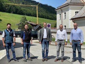 Andreas Dörfl, Tiefbau Dörfl, Aschau – der Wassermeister der Gemeinde Aschau Peter Graf – Bürgermeister Simon Frank – Sepp Bichler und Johannes Bichler vom Ingenieurbüro Bichler & Klingenmeier aus Bernau (von links)