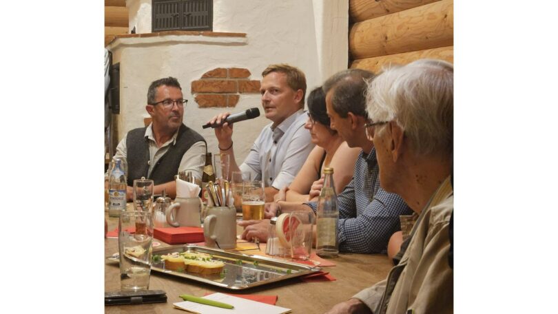 Im zweiten Teil des Gesprächs wurden allgemeinere Schwerpunkte der regionalen Baukultur angesprochen. Welche Perspektiven können von Bürgern und den Kommunen angegangen werden, um das Wohnen der steigenden Erwärmung anzupassen und ressourcensparend zu bauen? Was muss vorausplanend durch Bauinteressenten und Gemeinden getan werden, um sich vor den Folgen von erwartbaren Starkregen zu schützen? Was kann die Gemeinde tun, um die Nachverdichtung eher als Chance denn als Gefahr für die gewachsenen Ortsbilder auszugestalten?