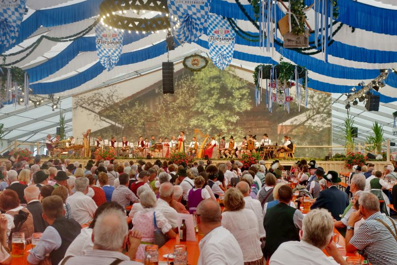 Foto/s: Hötzelsperger – Blick ins gut gefüllte Festzelt auf die Volksmusikbühne anlässlich dem Sänger- und Musikantentreffen.
