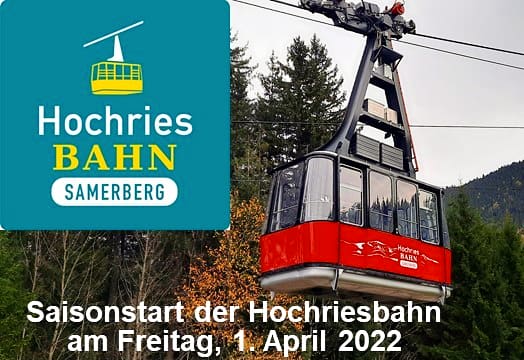 Das ist kein Aprilscherz: die Hochriesbahn Samerberg beendet ihre Winterpause und beginnt am Freitag, den 1. April wieder mit dem regulären Fahrbetrieb. Der Sessellift von der Talstation in Grainbach bis zur Mittelstation ist Mittwoch – Sonntag von 9.30 Uhr bis 17 Uhr in Betrieb, die Kabinenbahn verkehrt Mittwoch – Sonntag ab 10 Uhr von der Mittelstation zur Hochries Bergstation, im Regelfall halbstündlich, bei Bedarf häufiger.