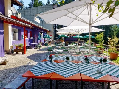 Fotos: Hötzelsperger – Gemütliche Einkehr-Terrasse mit Hochries-Aussicht bei der Kräuterhexe an der Hochriesbahn-Mittelstation