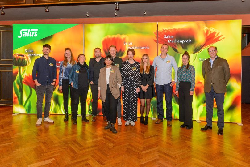 Bericht und Foto: Firma Salus – Die Gewinner:innen und Nominierten des Salus Medienpreises 2022 gemeinsam mit Salus Geschäftsführer Dr. Florian Block (ganz rechts) im Künstlerhaus in München.