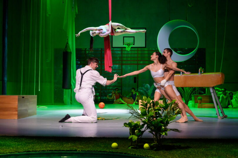- Schauspiel, Akrobatik und Tanz: (v.l.) Gregor Schulz, Larissa Enzi, Valbona Bushkola, Ben van Beelen
