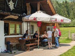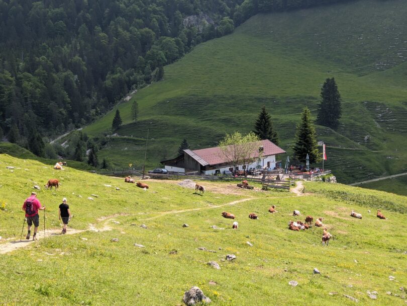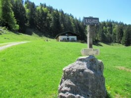 Nach dem überraschenden Intermezzo in der Triesdorferhütte machen wir uns auf den Rückweg zum Auto. Vorbei an der Gammern-Diensthütte und Stiegleralm sind wir in weniger als einer Stunde wieder am Ausgangspunkt und reden noch lange über die Einkehr bei Stilla Schramml und ihren “Sherpas”.