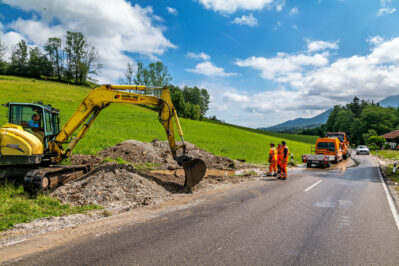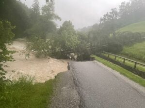 „Zeitweise war auch die Kreisstraße RO 9 zwischen Törwang und Eßbaum gesperrt. Auch die Straße vom Samerberg durchs Mühltal nach Nußdorf/Inn ist nicht befahrbar, dort hat der Steinbach erneut einen Teil der Straße weggerissen. Die drei Feuerwehren Roßholzen, Törwang und Grainbach waren stundenlang damit beschäftigt, Keller auszupumpen, Straßen wieder frei zu machen und sonstige Gefahrensituationen zu beseitigen“. „Für ihren enormen Einsatz darf ich mich ganz herzlich bedanken, auf unsere Feuerwehren ist Verlass, hier wird angepackt, wo es nötig ist. Aber auch die rasche Hilfe durch die Bergwacht oder die Nachbarschaft ist immer wieder bemerkenswert“, so der Bürgermeister, der sich noch am Abend ein Bild von der Lage vor Ort machte.