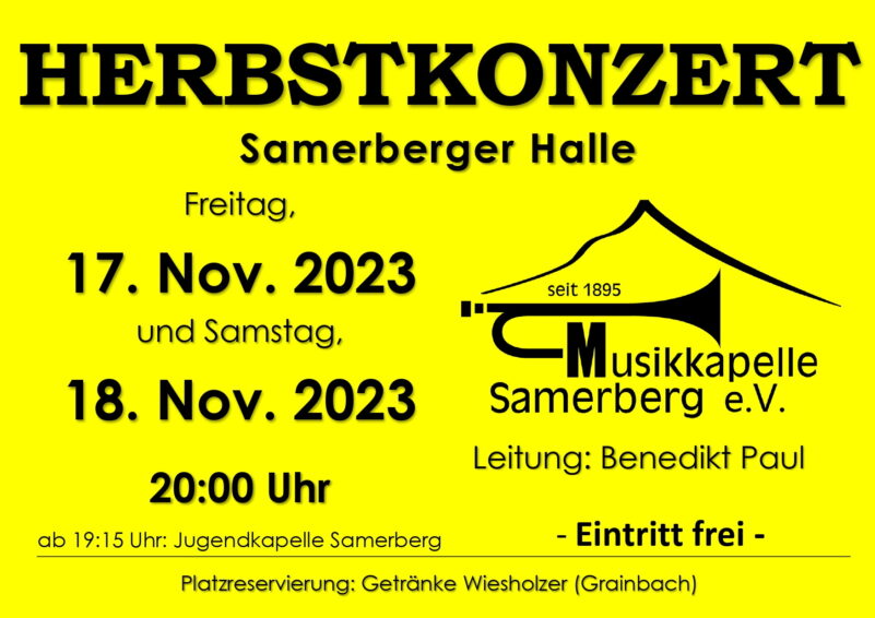 Die Musikkapelle Samerberg freut sich auf das anstehende Herbstkonzert. Bei der Generalprobe am Mittwoch wurden nochmal fleißig geprobt und ein letzter „Soundcheck“ in der Samerberger Halle durchgeführt. Das Herbstkonzert findet am Freitag 17. und am Samstag 18. November in der Samerberger Halle statt. Der Eintritt ist frei, Beginn ist um 20 Uhr. Sitzplatzkarten gibt es im Getränkemarkt Wiesholzer in Grainbach und an der Abendkasse.