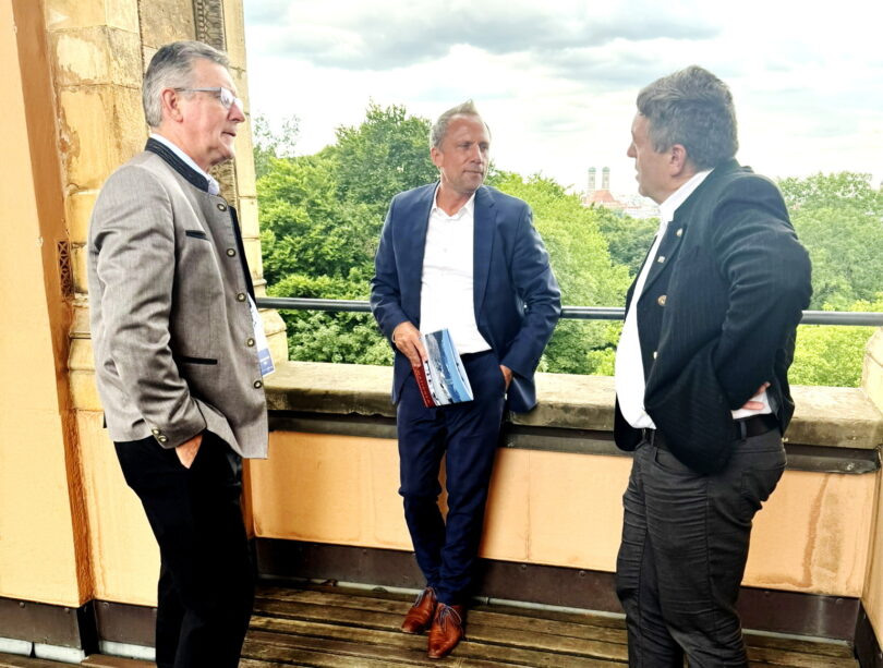 Bericht und Bild: Gemeinde Samerberg – Diskussion über fehlende Gelder bei der Landschaftspflege: Bürgermeister Georg Huber im Gespräch mit Umweltminister Thorsten Glauber und MdL Josef Lausch (FW) im Bayerischen Landtag.