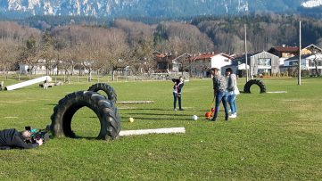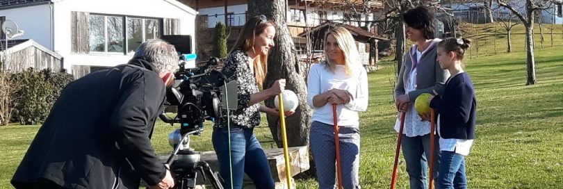 Vor kurzem besuchte ein dreiköpfiges Filmteam der ZDF-Serie Länderspiegel den Samerberg, um für die Rubrik „Reisetipps“ erste frühlingshafte Bilder einzufangen. Drehorte waren bei bestem Wetter der BikePark Samerberg und die Bauerngolfanlage in Grainbach. Dort hatten alle Beteiligten viel Spaß am Ausprobieren der Freizeitattraktionen. Zuvor durften die Besucher Maria Wörndl in ihrer Küche des Gasthofes Alpenrose in Grainbach beim Apfelstrudelbacken zusehen und hoffen, nun das Gelernte auch anwenden zu können. „Wir freuen uns immer wieder, dass der Samerberg auch für Film- und Fernsehen ein attraktives Ziel als Drehort ist. Dies bestätigt uns mit den Angeboten für unsere Urlauber und Gäste auf dem richtigen Weg zu sein,“ so Monika Schimanski von der Gäste-Information der Gemeinde Samerberg.