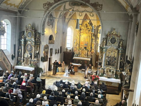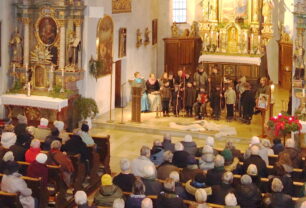 „Im Vorjahr hatte uns noch Gabi Reiserer das musikalische Programm für das Samerberger Adventssingen in der Törwanger Pfarrkirche zusammengestellt und uns somit auf die Ankunft Christi hingeführt. Nun mussten wir sie vor wenigen Wochen zu Grabe tragen und so wollen wir es halten, wie es von ihr gesagt wurde: das Leben klingt weiter, wenn auch der letzte Ton verklungen ist. Gabi bleibt für uns als Engel mit Gitarrenkoffer in Erinnerung!“ – mit diesen Worten hieß Diakon Günter Schmitzberger beim heurigen Adventsingen „Auf Weihnachten zua“ Mitwirkende und Zuhörer angesichts eines großen Bildnisses von Gabi Reiserer im Altarraum willkommen.