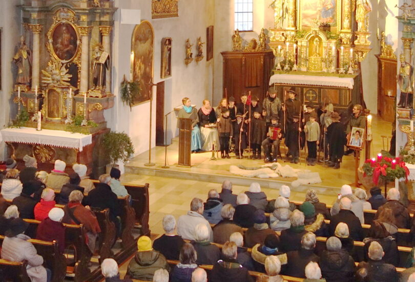 Die heurige Zusammenstellung des Musikprogrammes beim Adventsingen in der Kirche, die bereits eine halbe Stunde vor Beginn fast voll besetzt war und auch der abschließende und eindrucksvolle Auftritt der Samerberger Hirtenkinder lag in den Händen von Monika Bauer. Zusammen mit ihren Schwestern Susanne und Barbara trugen die Geschwister Bauer mit adventlichen Liedern zum staaden und besinnlichen Programm bei. „Den Sinn der staaden und besinnlichen Zeit dürfen wir bei all dem Trubel nicht vergessen, andernfalls hören wir im Advent nicht, wenn Gott bei uns anklopft. Nimm Dir deshalb Zeit für die Stille und für Nebenan“ – so Tobias Paststötter, der als priesterlicher Leiter des Pfarrverbandes Rohrdorf-Samerberg zusammen mit Diakon Günter Schmitzberger als Sprecher zwischen den Instrumental- und Gesangsweisen agierte. Die weiteren Darbietungen waren der Ziach-Solist Maxi Binder, die Harfinistin Susanne Dräxl-Sinhart, Samerberger Bläser und der Kirchenchor Samerberg unter der Leitung von Jürgen Gieck. Den Schluss-Akzent an diesem nachmittag setzten die über ein Dutzend Samerberger Dirndl und Buam als aufgeweckte Hirtenkinder. Mit Ziachweisen, mit Gesang und mit einem von der Predigtkanzel sich meldendem Engel folgten sie dem Weg des über dem Altar einschwebenden Sternes. Nachdem der Eintritt zum Samerberger Adventsingen frei war, gab Diakon Schmitzberger bekannt, dass nach Abzug der Unkosten die gesammelten Spenden an Menschen vom Samerberg gegeben werden, die in Not sind. Gemeinsame Veranstalter des Adventsingens als Teil des Dorfadvents waren der Kirchenchor Samerberg, der Tourismusverein Samerberg sowie erstmals auch der Samerberger Trachtenverein Hochries-Samerberg.
