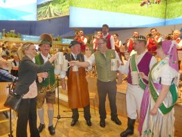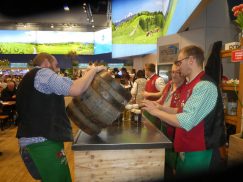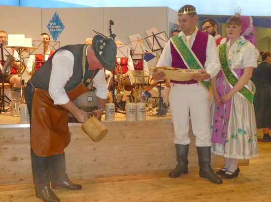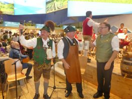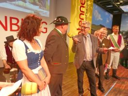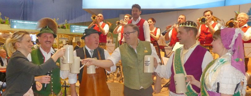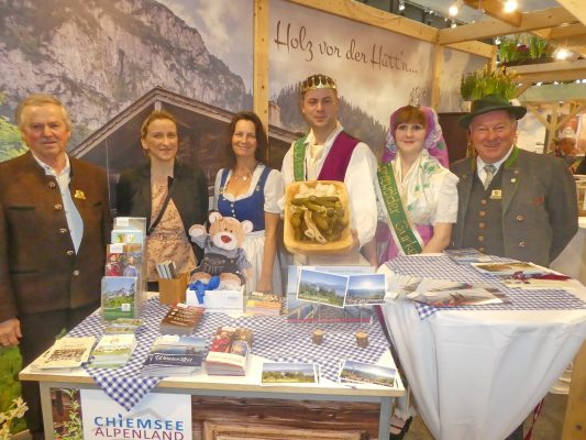 Für die Gemeinde Samerberg war die heurige Grüne Woche in Berlin besonders interessant und erfolgreich. Im Rahmen eines Aktionstages konnte eine Samerberger Delegation unter der Leitung von Zweiten Bürgermeister Christoph Heibler gute Aufmerksamkeit für die Hochtalregion im Landkreis Rosenheim erzielen. Der „Samerberg-Tag“ begann mit dem Anzapfen eines Fasses Bieres von der Brauerei Flötzinger im Biergarten des Entenwirts. Dabei schaffte es Bürgermeister Heibler, mit zwei Schlägen und ohne jeglichen Tropfen Bierverlust das bekannte „Ozapft is!“ zu verkünden. Im Biergarten von Entenwirt Peter Schrödl konnten die Samerberger auch eine Vertretung aus Spreewald-Landkreisen mit dem Spreewälder Gurkenpaar begrüßen und einen Tourismus-Dialog führen. Gemeinsam mit den Spreewäldern ging es dann in die Brandenburg-Halle zu einem Auftritt mit der Samerberger Musik „NeiSamer“ unter der Leitung von Benedikt Paul bei Antenne Brandenburg. Dabei konnte Bürgermeister Heibler den Samerberg und die Chiemsee-Region zusammen mit Astrid von Rauhecker vom Tourismusverband Chiemsee-Alpenland und mit Bartholomäus Paul von der Anbietergemeinschaft Urlaub auf dem Bauernhof vorstellen. Am nachmittag war dann die Samerberger und Chiemseer Gemeinschaft zu einem Empfang in der Staatskanzlei von Potsdam eingeladen aufgrund der langjährigen Tourismusfreundschaft zwischen Spreewald und Landkreis Rosenheim seit dem Mauerfall.  Wieder zurück in den Berliner Messehallen stand dann eine Bühnenpräsentation auf der Länderbühne der Agrarsozialen Gesellschaft auf dem Programm. Dabei konnte Peter Brodschelm vom Bikepark Samerberg zusammen mit Bürgermeister Christoph Heibler die Vorzüge des Wander- und Radler-Paradieses Samerberg vorstellen. Samerberger Musikanten waren zudem noch an zwei Tagen in der Halle des Landes Baden-Württemberg, am Stand des Landes Norwegen, in der Bayerischen Landesvertretung und in verschiedenen Berliner Lokalitäten unterwegs, überall konnten sie für ihre Heimat werben. An einem nachmittag traten die Samerberger mit Atzinger Trachtlern noch beim Bürgertreff in Berlin-Lichterfelde auf, um den dortigen reisefreudigen Senioren den Samerberg vorzustellen.