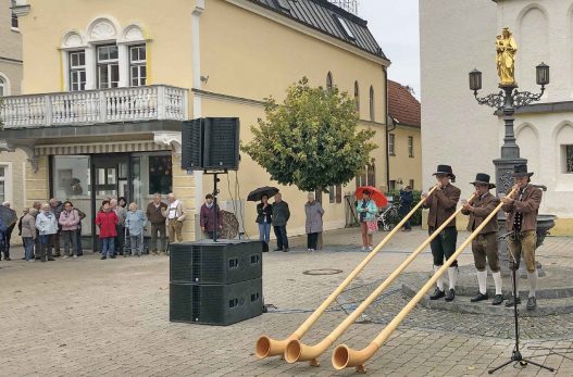 Am Erntedank-Sonntag traten die Samerberger Alphornbläser gemeinsam mit einer Goaßlschnazer- und Plattler-Gruppe vom Trachtenverein Hochries-Samerberg aus Grainbach beim 62. Nandlstädter Hopfenfest auf. Die Auftritte erfolgten zusammen mit der Musikkapelle „D´Spreißler“ aus Kehlheim beim Festgottesdienst in der Hopfenhalle sowie beim Festzug durch Nandlstadt. „Mit unseren Alphörnern, Plattlern und Schnalzern haben wir den Samerberg und den Chiemgau in der Holledau bestens vertreten“ – so Benedikt Paul als Leiter der Alphornbläser und Johannes Stuffer als Vorplattler nach ihrer Rückkehr. Dies bestätigte Rainer Klier als Moderator des Hopfenfestes mit den Worten: „Sauber waren die Samerberger Auftritte“.